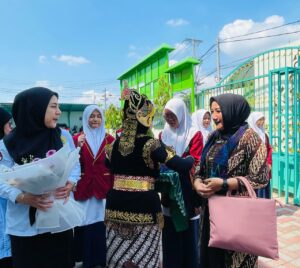Di sepanjang jalan, para siswa berbaris rapi sambil membentangkan spanduk, sementara Bapak Ibub Guru  pula di sepanjang lorong .  Iringan gending Jawa yang mengalun lembut menambah kental nuansa budaya dalam penyambutan ini.