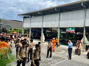 Sleman (MTsN 10 Sleman)  – Suasana di MTsN 10 Sleman siang itu mendadak  gempar. Sirene tanda bahaya meraung-raung, membuat siswa yang tengah belajar di kelas  panik. Anak-anak berhamburan berlari keluar kelas untuk menyelamatkan diri, sementara sebagian lainnya terlihat berlindung di bawah meja.