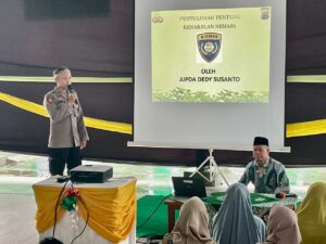 Aipda Dedy Susanto menyampaikan materi penyuluhan tentang Kenakalan Remaja dengan fokus pada penanaman tertib peraturan dan hukum sejak dini. Ia menjelaskan bahwa masa remaja (usia 12–21 tahun) adalah masa peralihan dari anak menuju dewasa yang disertai semangat tinggi.